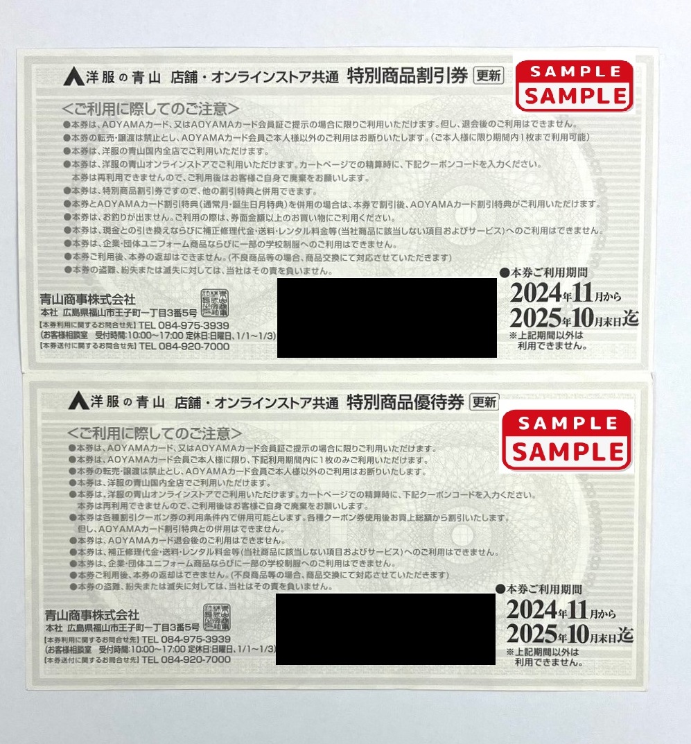 洋服の青山 特別商品割引券【3,000円分】&優待券