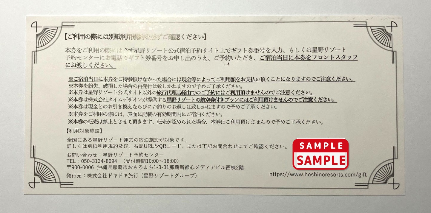 ■全国にある星野リゾート運営の宿泊施設で使用できます。旅行代理店経由での予約には使用できません。詳しくはHP(https://www.hoshinoresorts.com/gift/)や画像にてご確認願います。