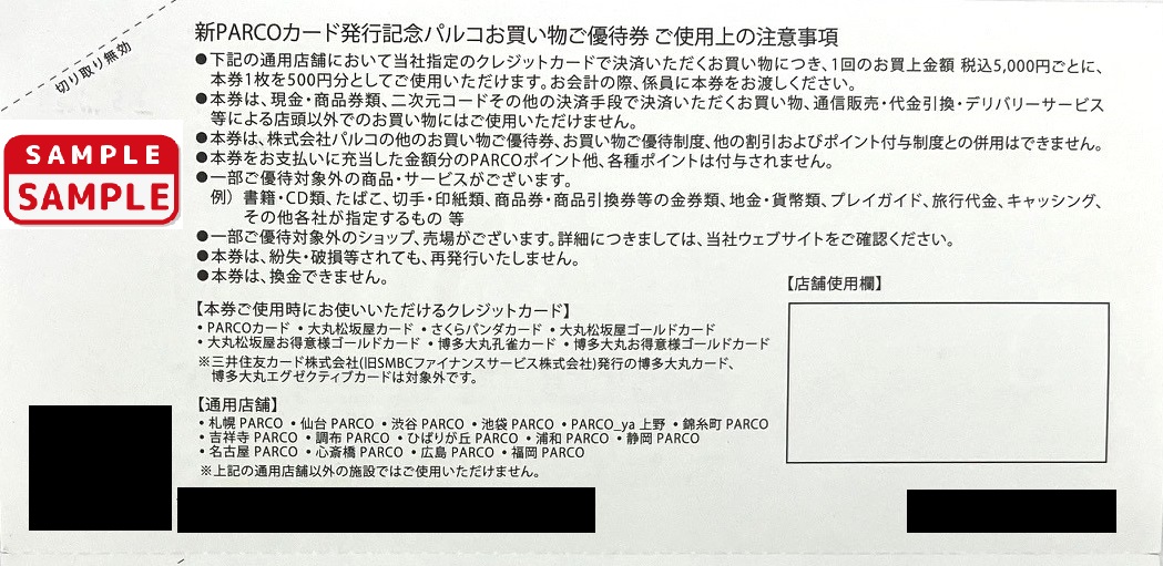 パルコお買物優待券【500円券】